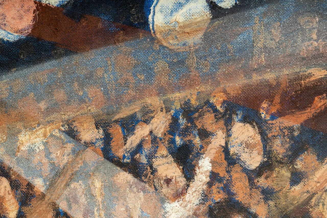 La pintura titulada ‘Huecos’ se articula a partir de un conjunto de formas básicas que remiten a uno de los principios estructurales más constantes en la creación de Ramón Lapayese: la concepción del espacio como entidad activa y significativa. En esta obra, las formas no se definen tanto por su condición volumétrica como por la relación que establecen entre lleno y vacío, convirtiendo el hueco en un elemento compositivo central y no subsidiario.
