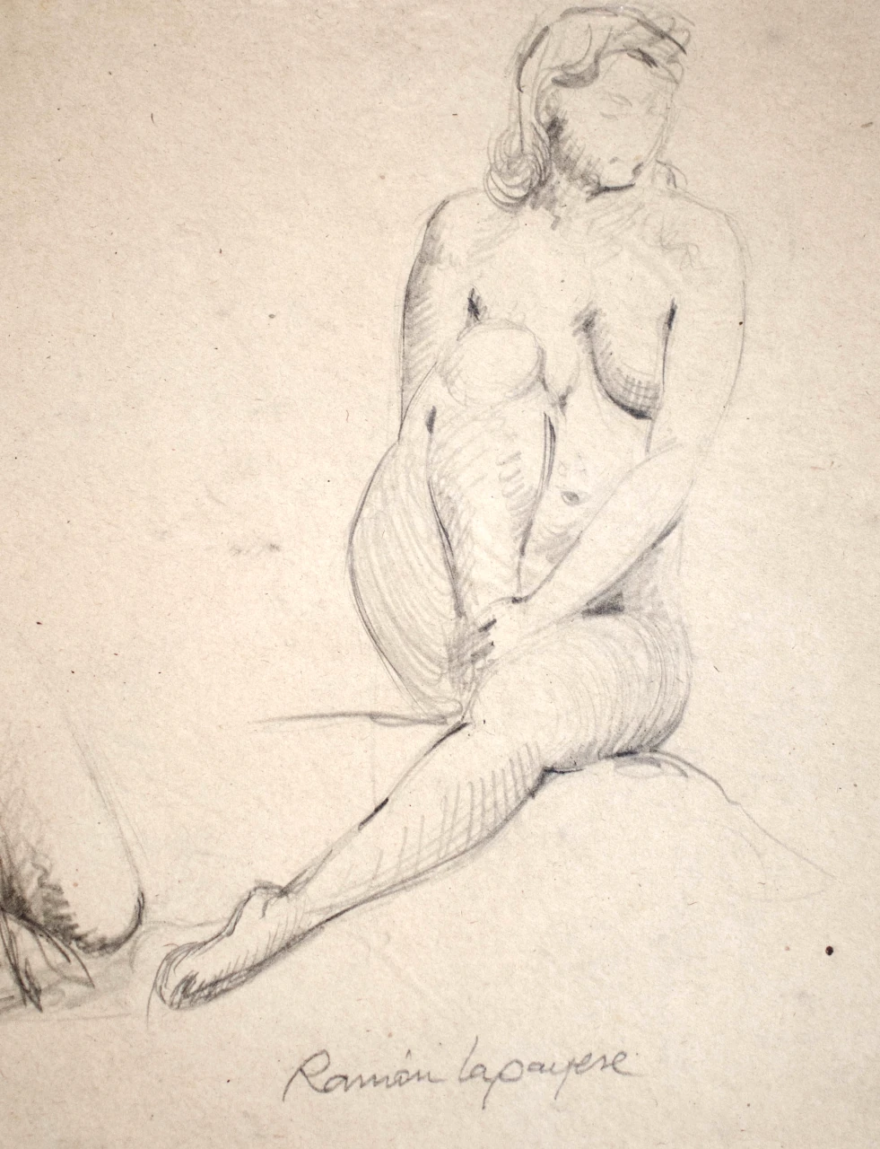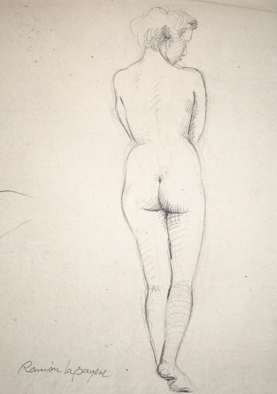 Ramón Lapayese desarrolló su obra pictórica caracterizada por la reflexión formal y la contención expresiva, dentro de la cual podemos contemplar todo tipo de temáticas y personajes, entre ellos sus óleos dedicados a la pesca submarina. En estas composiciones, el artista representa figuras humanas de marcada verticalidad, donde prevalece una sensación de silencio y concentración. La serenidad de los personajes, junto con la ausencia de gestos enfáticos, evidencia una sobriedad expresiva que aleja estas escenas de cualquier intención narrativa o anecdótica, situándolas en un plano sutil.