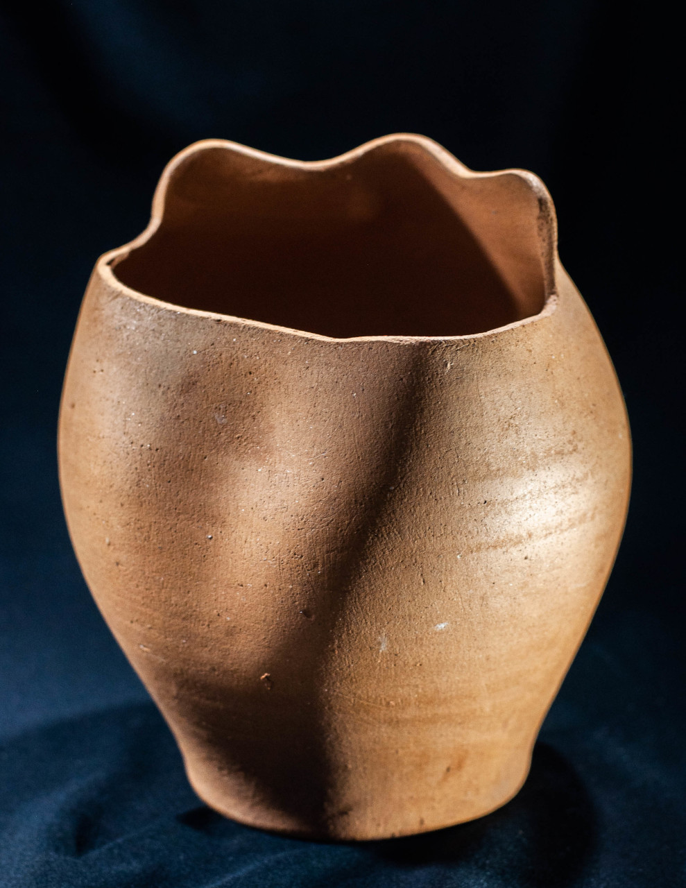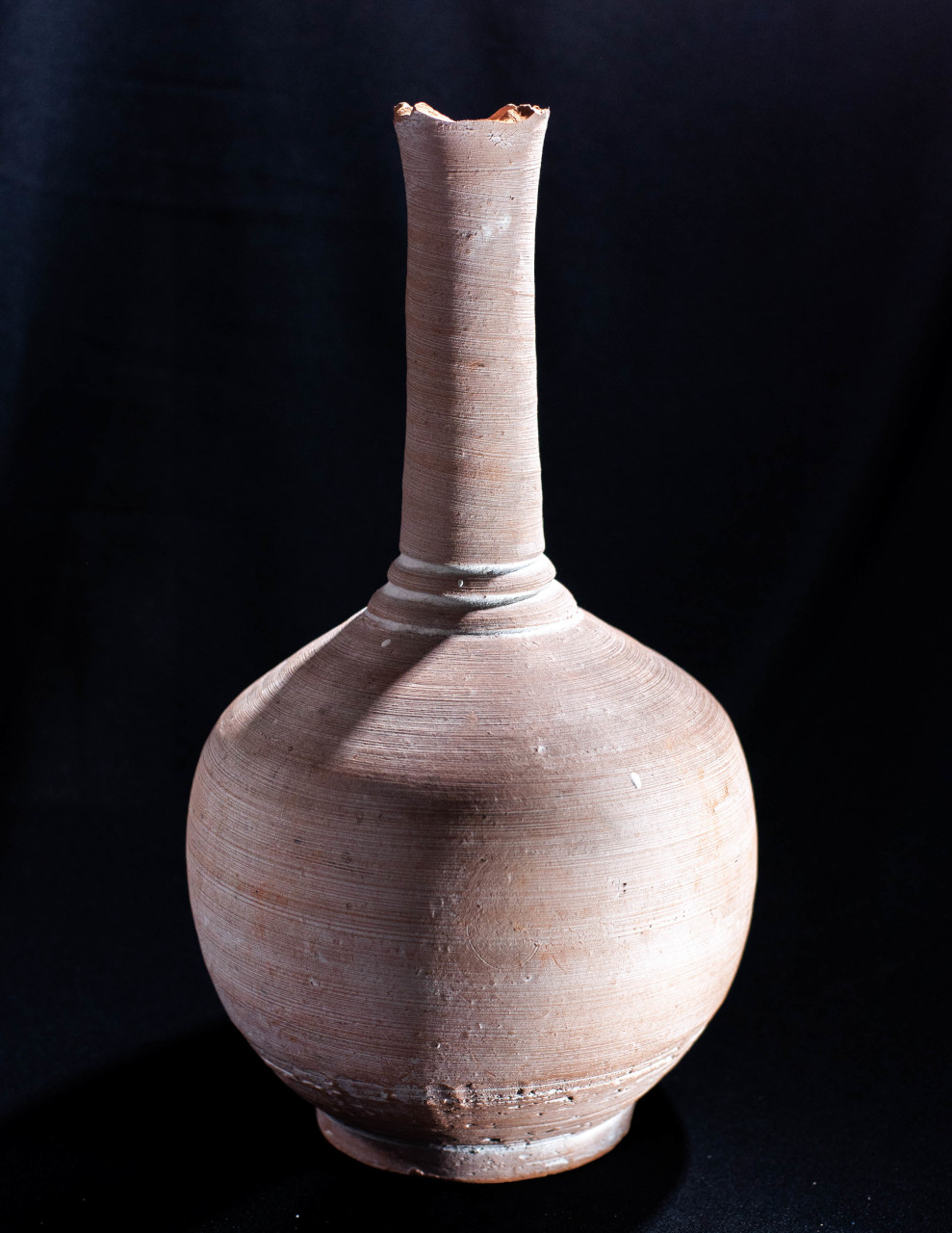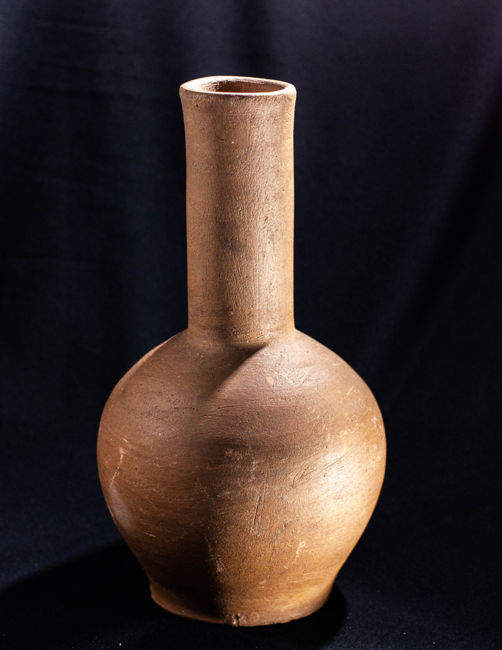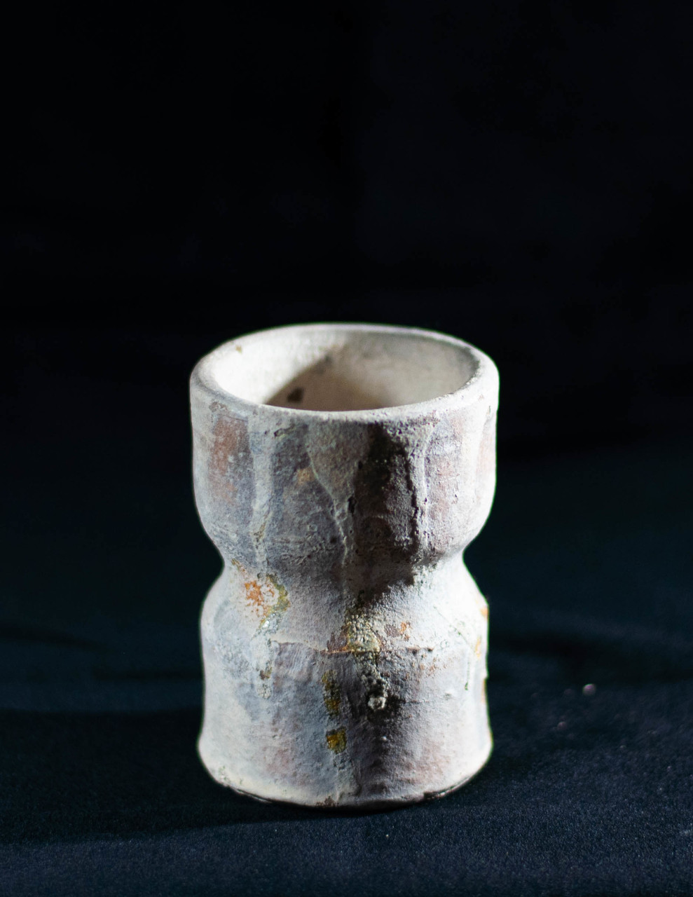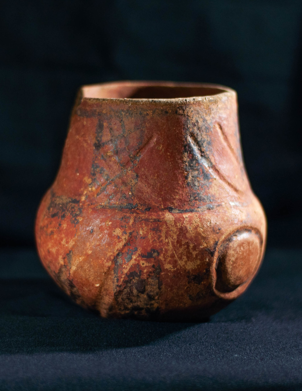 Algunas incluyen un agujero en medio, todo asimetrías y movimiento, frecuentemente pellizcados y con abolladuras, con o sin asa, y tanto en arcilla gris como roja.