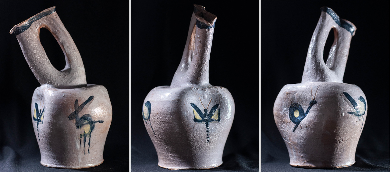 Ramón Lapayese modela todos estos objetos de alfarería, en forma de vasijas, con referencias a las ánforas romanas y de otras civilizaciones antiguas, y además, botellas, tarros, platitos, bandejitas o ceniceros – Ramón fumaba en pipa -, cuencos, cántaros, tazas, botijos y demás de diverso tipo, como posibles escanciadores, vinagreras o floreros, y sus variaciones destinadas a otros usos – sin olvidar la posible producción de cálices para la liturgia cristiana. Alguna pieza podría pasar por candelabro o palmatoria.